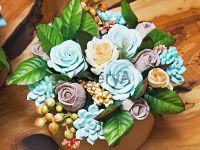 Стоимость букета зависит от сложности изготовление цветов, а так же присутствующих других дополнительных элементов