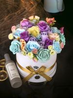 Упаковка – красивый подарочный (БОЛЬШОЙ) пакет. Цветы в букете изготовлены из хрупкого материала – аромакерамики, мы бережно относимся к своей продукции.