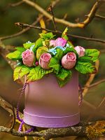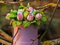Упаковка – красивый подарочный (БОЛЬШОЙ) пакет. Цветы в букете изготовлены из хрупкого материала – аромакерамики, мы бережно относимся к своей продукции.