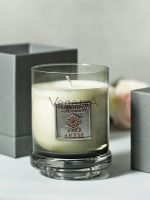 Упакована свеча в эксклюзивную, дорогую, фирменную коробку стального цвета, из прочного, дизайнерского картона, внутри с ложементом, c большой продольной крышкой
