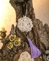 Ароматизированная керамика выполнена в виде подвески нежного ангела, с красивым дополнением - длинной кисточкой и натуральным камнем