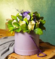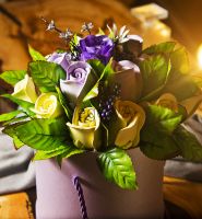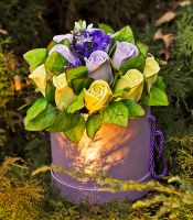 Упаковка – красивый подарочный (БОЛЬШОЙ) пакет. Цветы в букете изготовлены из хрупкого материала – аромакерамики, мы бережно относимся к своей продукции.